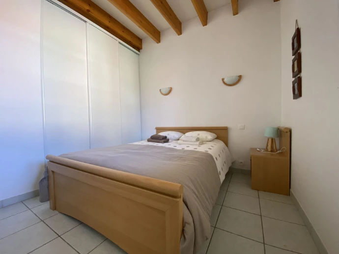 - une chambre avec un lit double 140 x 190 cm et placard